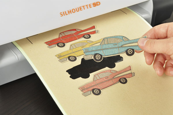 The Silhouette CAMEO® is an electronic cutting machine for personal use. Like a home printer, it plugs into your PC or Mac® with a simple USB cable. However, instead of printing it uses a small blade to cut paper, cardstock, vinyl, fabric and more up to 12" wide and 10 feet long. The machine also has the ability to register and cut printed materials.
